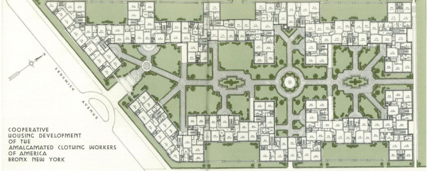 Herman Jessor. Typical floor plan of the First Building of the Amalgamated Housing Cooperative in the Bronx, completed in 1927 using the “garden apartment” typology. Source: 30 Years of Amalgamated Cooperative Housing, 1957.